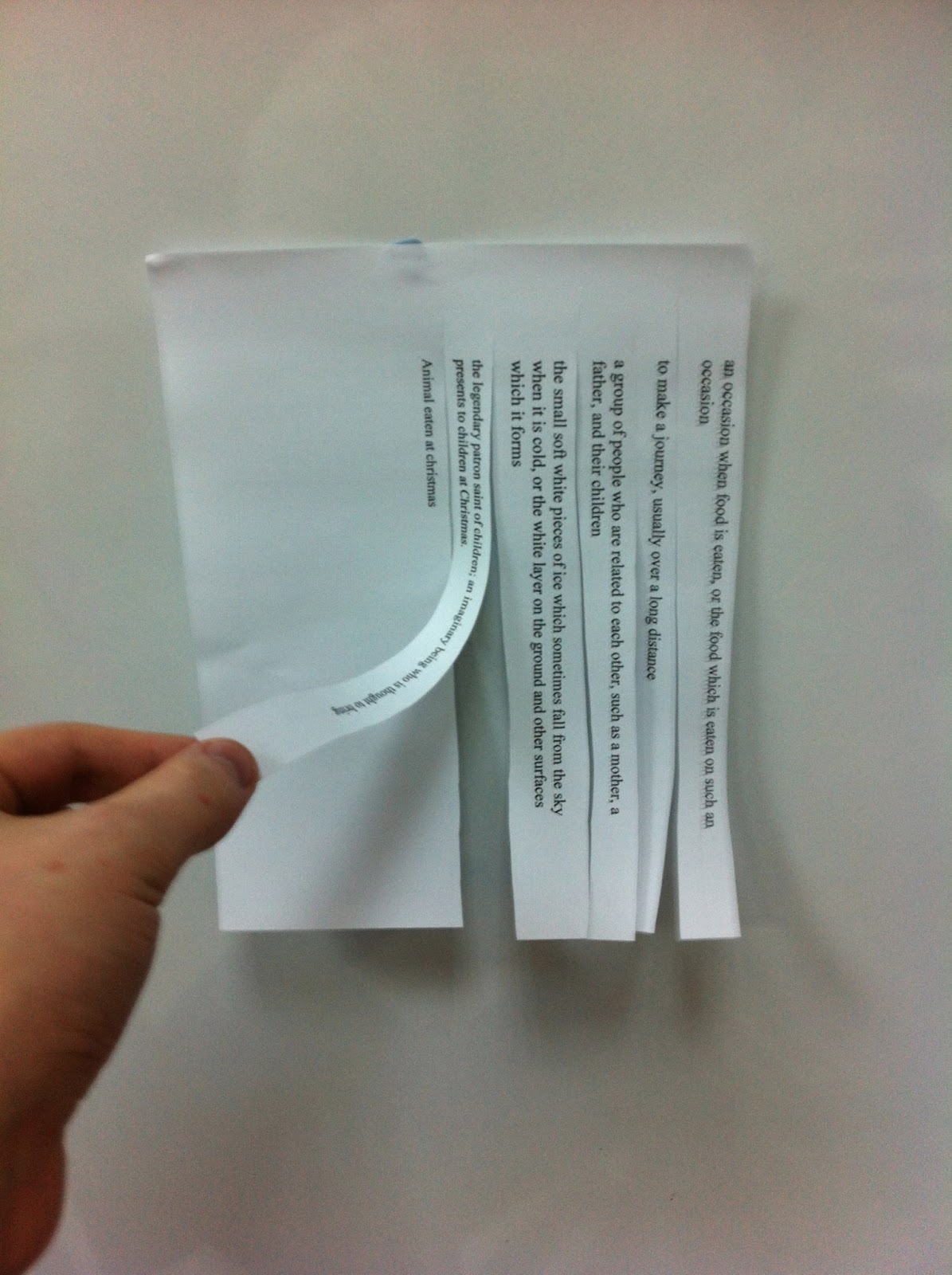 2. Print out one sheet per two students. Cut the definitions into strips but don’t cut all the way.  (See picture 2)